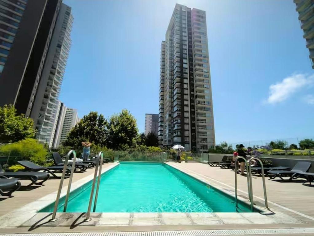 Los huéspedes pueden disfrutar de múltiples piscinas en Costa Montemar, Concon Eco Costas 1D1B, como.