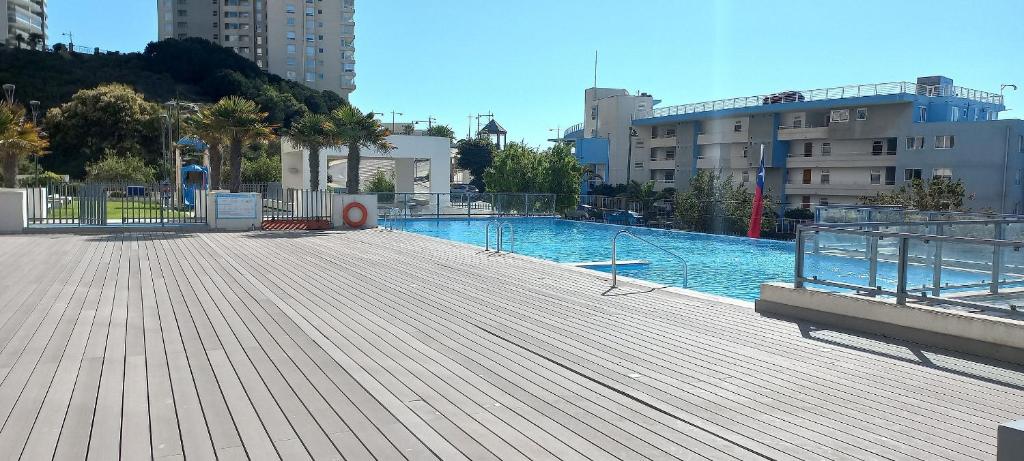 Hay varias instalaciones de piscina disponibles en RBK° Depto con gran vista en Costa de Montemar, incluyendo piscina al aire libre y piscina climatizada.